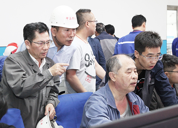 4萬機(jī)組一次并網(wǎng)成功后,集團(tuán)總工程師李成玉(右三)、項(xiàng)目建設(shè)部長胡林桂(右一)中鑫熱電總經(jīng)理韋毅民(右二)和副總經(jīng)理李樹彬(右四)同部分生產(chǎn)、技術(shù)管理骨干在中控室露出歡快的笑容!