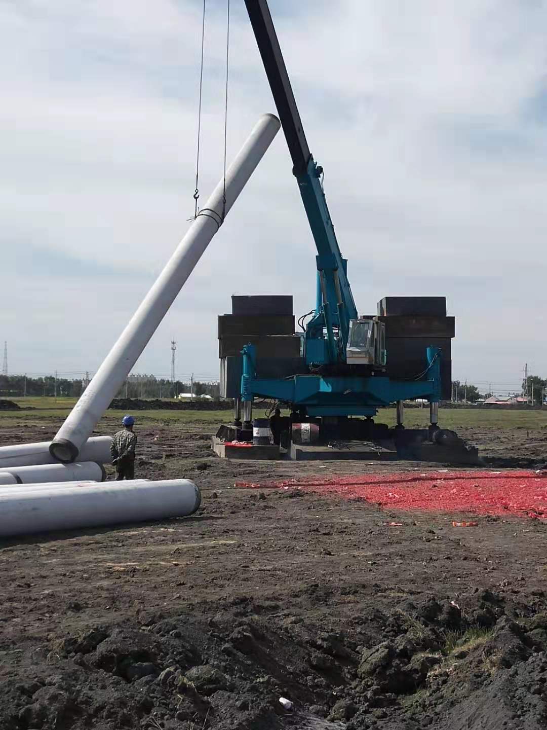 打樁機(jī)將水泥樁吊起
